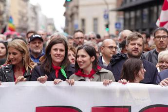 ELLY SCHLEIN – "È un giorno in cui chi fa politica credo debba anche non solo onorare quella memoria e quel sacrificio, ma anche proiettarlo nel presente per il futuro" afferma la segretaria del Pd Elly Schlein. "La paura di futuro oggi assume vesti nuove e chiama noi nelle istituzioni, in politica, nel Paese a un impegno quotidiano per realizzare pienamente quei valori e quei principi costituzionali che ancora, purtroppo, non sono pienamente attuati. Ci concentreremo ogni giorno, non soltanto in questa bella festa di liberazione, ma ogni giorno per portare avanti la battaglia per il diritto alla salute delle persone, per il diritto allo studio di tutti i bambini in questo Paese, per il diritto al lavoro dignitoso e di qualità". Un impegno "quotidiano per contrastare le diseguaglianze per realizzare pienamente quei principi costituzionali per cui qualcuno ha dato la vita" aggiunge Schlein che parla di una "bella manifestazione molto partecipata qui a Milano. La festa della Liberazione è il giorno in cui dobbiamo onorare la memoria dei tanti che hanno sacrificato la loro vita per poter costruire la nostra libertà, per poter dar vita grazie alla resistenza antifascista a quella che oggi è la nostra Repubblica, un giorno in cui dobbiamo solo ricordare e non dare per scontato la Costituzione con i suoi principi e i suoi valori di libertà". "Penso che alla festa della liberazione chi come noi, come Partito Democratico, partecipa non solo a Milano ma in tutte le manifestazioni lo fa con lo spirito di ricordare che cosa è stata la dittatura nazifascista, che cosa è stato il sacrificio di chi ha voluto liberarci e di ricordare come riportare oggi quei valori della Resistenza" dice la segretaria del Pd Elly Schlein che non risponde, direttamente, a chi le chiede – da piazza Duomo a Milano – un commento sulla lettera della premier Giorgia Meloni al Corriere della Sera. Valori "che continuano ad animare il nostro impegno quotidiano, noi continuiamo a combattere per il diritto allo studio, alla salute e al lavoro. Siamo qui a onorare la Resistenza antifascista e continueremo a farlo oggi perché fa parte della nostra storia, continueremo onorare la resistenza antifascista".