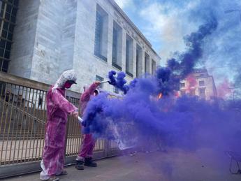 (Adnkronos) – Blitz con fumogeni di fronte al tribunale di Milano, durante il corteo milanese organizzato in occasione dell'8 marzo, Festa della Donna. Una squadra di attivisti con le tute bianche, macchiate di rosso, ha inscenato un’azione di protesta srotolando uno striscione e accendendo fumogeni rossi davanti ai cancelli del Palazzo di giustizia, chiusi e presidiati da uno schieramento delle forze dell’ordine per impedire l’ingresso dei manifestanti. “Ogni volta che non veniamo ascoltate e credute, veniamo sottoposte a violenza – grida un’attivista – Anche in tribunale, veniamo violentate ogni volta che ci si dà la colpa di una violenza per l’abbigliamento indossato o per un atteggiamento adottato, Questa giustizia non ci rappresenta e noi siamo il grido altissimo e feroce di tutte quelle donne che non hanno più voce”. Poco prima cori contro Confindustria. Dopo aver percorso via Mazzini, costeggiando piazza Duomo, i manifestanti sono arrivati nei pressi della sede di Assolombarda, in via Pantano. Il gruppo si è fermato e subito si sono levati cori contro Confindustria, colpevole – secondo i manifestanti – di sostenere le politiche di alternanza scuola lavoro. Politiche che, sostengono, sarebbero alla base di episodi di sfruttamento e di incidenti, come quelli accaduti a Lorenzo Parrelli, Giuseppe Lenoci e Giuliano De Seta, morti nel 2022 durante percorsi di formazione in alternanza scuola-lavoro. “Il bilancio dei morti continua ad aumentare anno dopo anno, giorno dopo giorno -gridano gli attivisti dal megafono-. Ma noi non andiamo a scuola per essere educati ad essere sfruttati”. —cronacawebinfo@adnkronos.com (Web Info)