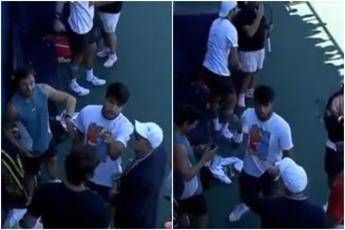 Carlos Alcaraz contro le telecamere 'spia' agli US Open. Il tennista spagnolo, che sta preparando l'esordio nello Slam americano, in cui sfiderà al primo turno lo statunitense Reilly Opelka, si sta allenando sul cemento di New York, mostrando però più nervosismo del solito. Questa volta non c'entra l'eterna sfida con Jannik Sinner, battuto in finale a Cincinnati a causa del malore accusato dall'azzurro alla fine del primo set, ma le riprese un po' 'invadenti' delle telecamere degli US Open. Il torneo sta, come sempre, mostrando infatti live sul proprio canale YouTube e sui profili social ufficiali, l'avvicinamento dei tennisti e i loro allenamenti, inquadrandoli anche fuori dal campo. Alcaraz è stato quindi ripreso dalle telecamere durante un fitto colloquio con il suo staff, che gli stava dando indicazioni su cosa migliorare e sulle zone di campo su cui concentrare i suoi colpi. Durante la 'riunione' però, lo sguardo dello spagnolo si è posato sulla telecamera che lo stava riprendendo dall'alto e si è lasciato andare a un gesto di stizza. Alcaraz l'ha prima indicata e poi se ne è lamentato apertamente con il suo allenatore e tutto il team, lasciando trapelare tutto il suo nervosismo per una ripresa che, secondo lui, è stata decisamente invadente e indiscreta. —sportwebinfo@adnkronos.com (Web Info)