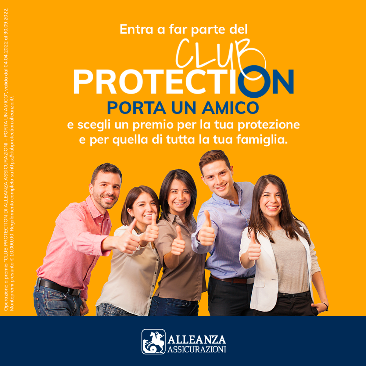 Alleanza Assicurazioni, punto di riferimento delle famiglie italiane, lancia il ‘Club protection’, una speciale iniziativa per tutti i clienti alleanza che sottoscrivono una delle soluzioni della compagnia in ambito protezione, previdenza, investimento o risparmio previste dal regolamento e segnalano al proprio consulente di fiducia alleanza almeno due familiari o due amici che poi diventano clienti entro il 31 dicembre 2022.