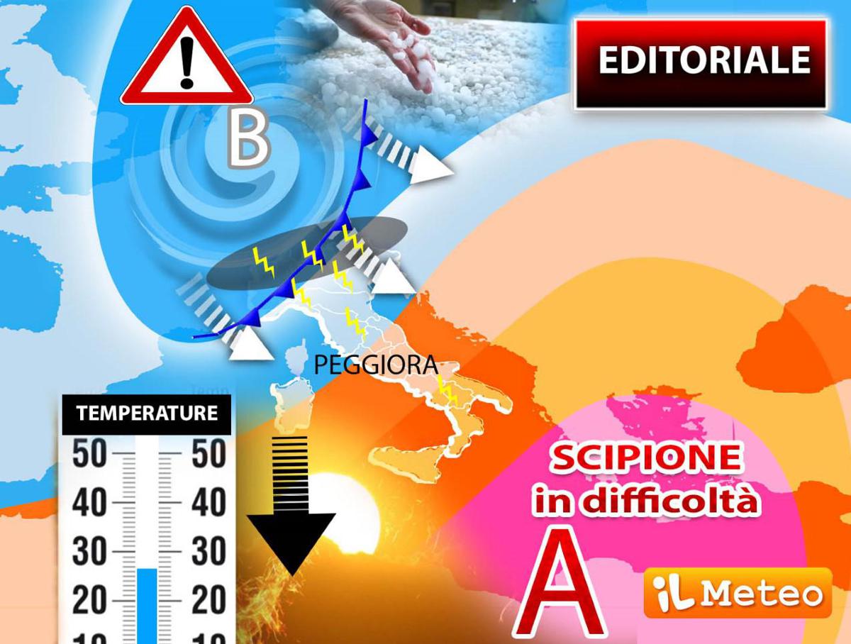 Sarà da martedì 7 che aria più fresca in quota raggiungerà le regioni settentrionali rendendo l’atmosfera alquanto instabile. Sin dalle prime ore, infatti, rovesci e temporali dai settori alpini e prealpini di Lombardia e Triveneto scenderanno verso le rispettive zone pianeggianti, sia pure a carattere piuttosto irregolare. Antonio Sanò, direttore e fondatore del sito www.iLMeteo.it ci dice che lo scontro tra masse d’aria completamente diverse (aria fresca e il caldo preesistente) fornirà l’energia necessaria per la formazione anche di intense celle temporalesche generatrici di forti grandinate. Vien da sé che assieme ai temporali ci sarà pure un calo termico. Nei giorni successivi e fino a giovedì 9 il fronte temporalesco scenderà verso le regioni centro-meridionali (soprattutto sul versante adriatico) anche qui con grandine, talora anche di grosse dimensioni. Infine, da venerdì 10 Scipione si riprenderà gradualmente il terreno perduto, garantendo altre giornate soleggiate, probabilmente includendo anche il weekend dell’11/12 Giugno.