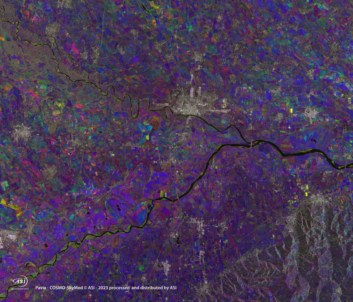 L’Agenzia Spaziale Italiana evidenzia che l’immagine è il risultato di un’elaborazione in Rgb di 3 immagini acquisite dalla Costellazione Cosmo-SkyMed dal 2020 a marzo 2023, ad ognuno dei 3 canali Rgb è stata associata una delle immagini selezionate per l’analisi.