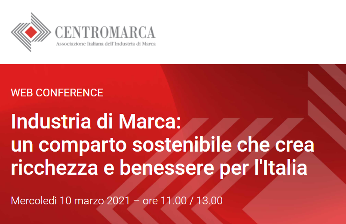 Mercoledì 10 marzo alle 11.00 si terrà la web conference “Industria di Marca: un comparto sostenibile che crea ricchezza e benessere per l’Italia”, promossa da Centromarca.