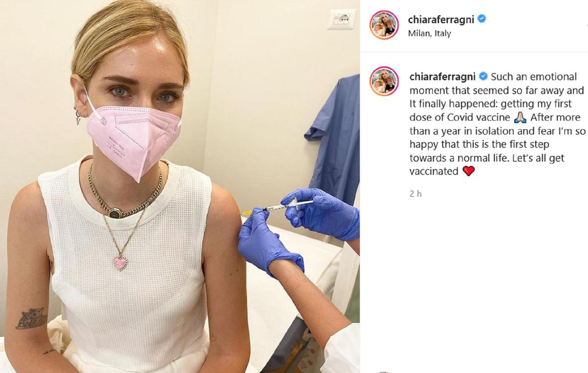 Chiara Ferragni si è vaccinata contro il Covid-19. Lo ha reso noto lei stessa con un post sul suo profilo Instagram, dove ha pubblicato la foto dell’iniezione. “Un momento così emozionante che sembrava così lontano e finalmente è successo: ricevere la mia prima dose di vaccino contro il Covid. Dopo più di un anno in isolamento e paura sono così felice che questo sia il primo passo verso una vita normale. Vacciniamoci tutti”, si legge nella didascalia.