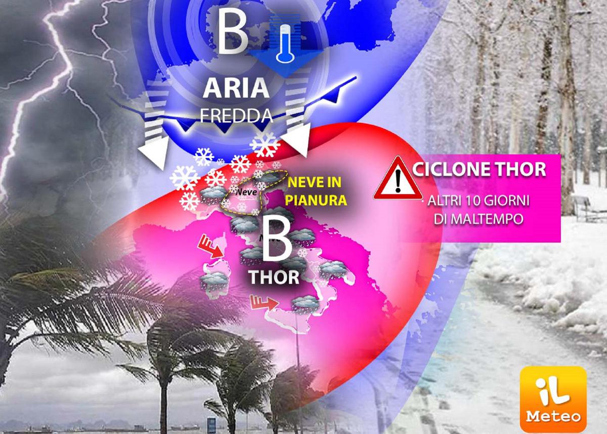 Nel dettaglio, il Ciclone Thor risalirà nelle prossime ore dal Centro Italia verso il Nord, avvinghiando nelle sue spire invernali nuovamente il Nord-Est con tanta neve in pianura tra Basso Veneto, Emilia e Toscana: il nucleo più intenso di precipitazioni nevose è atteso nel pomeriggio sull’Emilia dove si potrebbero avere altri accumuli al piano di 10-15 cm, prestate attenzione dunque. Significative anche le nevicate attese sul Basso Veneto ma di minore intensità, e quelle a quote di bassa collina della Toscana dove qualche fiocco potrebbe svolazzare fino alle pianure.
