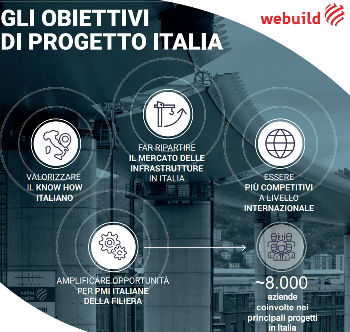 Il Progetto Italia, il piano lanciato da Webuild per creare un grande player delle infrastrutture con una presenza prevalente in Italia, è ormai completato. L’atto che sancisce la fine di un lungo percorso iniziato nel 2019 con l’annuncio dell’amministratore delegato dell’allora Salini Impregilo, Pietro Salini, è il deposito del nuovo statuto sociale presso il registro delle imprese. Uno Statuto che fotografa dimensioni e portata di un gruppo, nato anche dall’ingresso nell’azionariato di Cdp Equity Spa e delle principali istituzioni finanziarie del paese (Intesa Sanpaolo, Unicredit, Banco Bpm), che nel 2019 hanno firmato accordi di investimento, per una operazione che ha raggiunto numeri considerevoli in tema di ricavi, portafoglio ordini e forza lavoro.