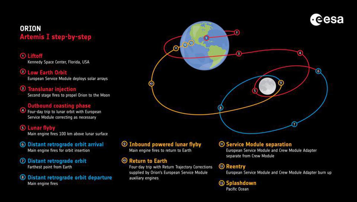 Il veicolo spaziale, ha spiegato l’Esa, ha l’obiettivo di entrare “nell’orbita lunare utilizzando la gravità della Luna per guadagnare velocità e spingersi a quasi mezzo milione di chilometri dalla Terra, più lontano di quanto qualsiasi veicolo spaziale umano abbia mai viaggiato”. E in questa tappa della prima missione verso il ritorno alla Luna, il modulo di servizio si è acceso permettendo a Orion di raggiungere l’orbita Dro. Dunque un duplice successo, di Orion e di Esm realizzato dall’Esa con un rilevante contributo made in Italy di Asi con l’industria italiana.