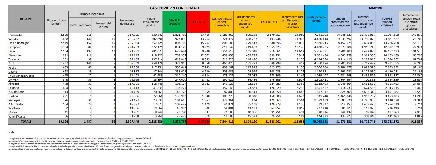 Oggi positivi: 112.691