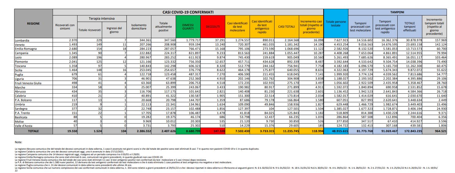 Tamponi fatti oggi: 1964.521