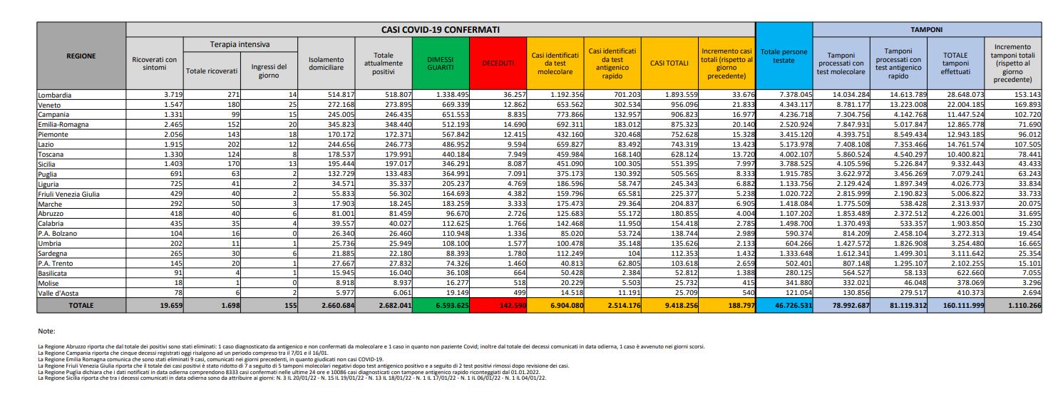 Tamponi fatti oggi: 1.110.266