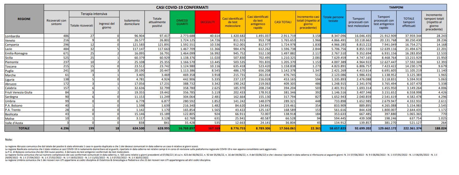 Corona Virus Italia: Totale Positivi oggi: 22.361 i deceduti 80