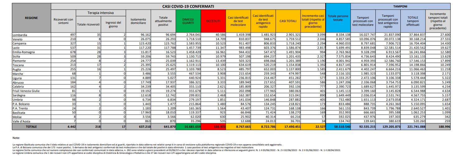 Attualmente positivi: 641.870