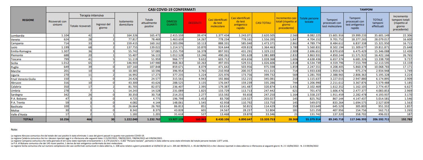Tamponi fatti oggi: 192.782