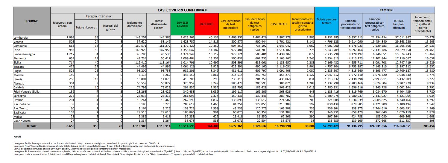Tamponi fatti oggi: 203.454