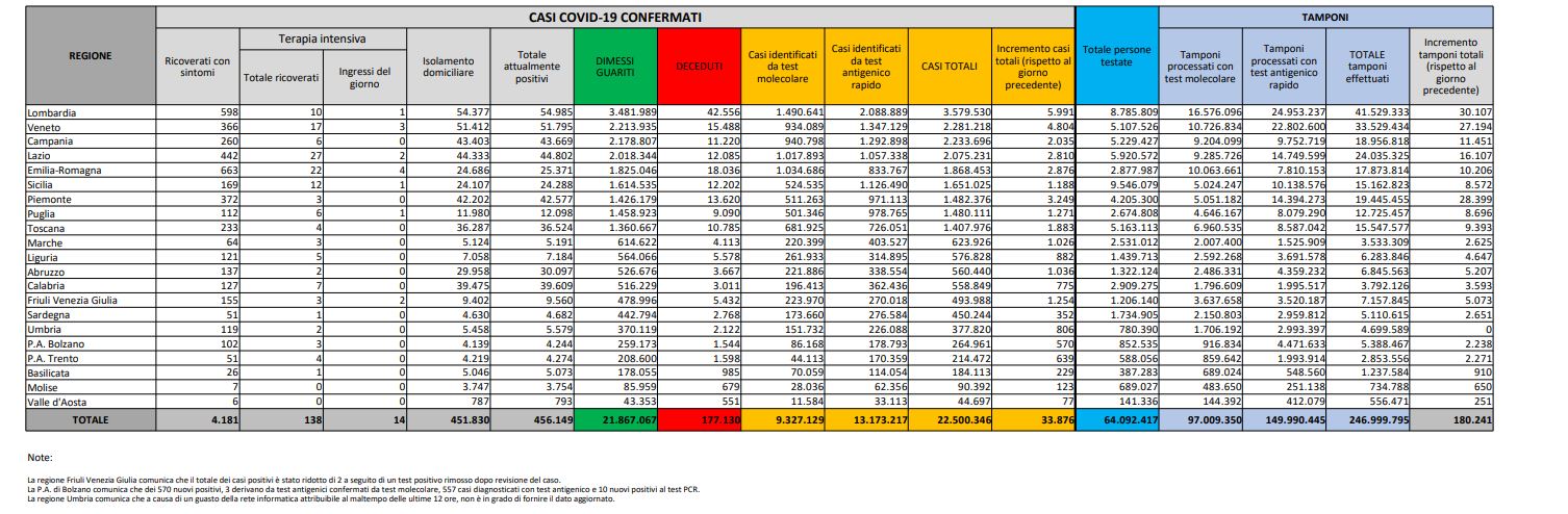 Attualmente positivi: 456.149
