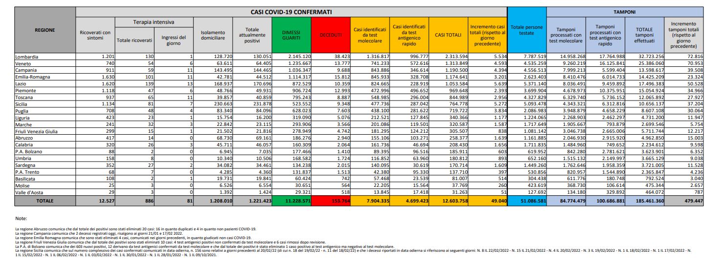 Attualmente positivi: 1.221.423