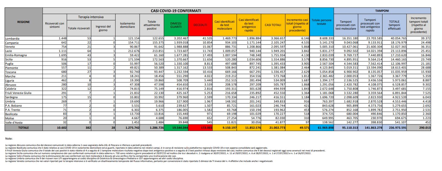 Tamponi fatti oggi: 290.013