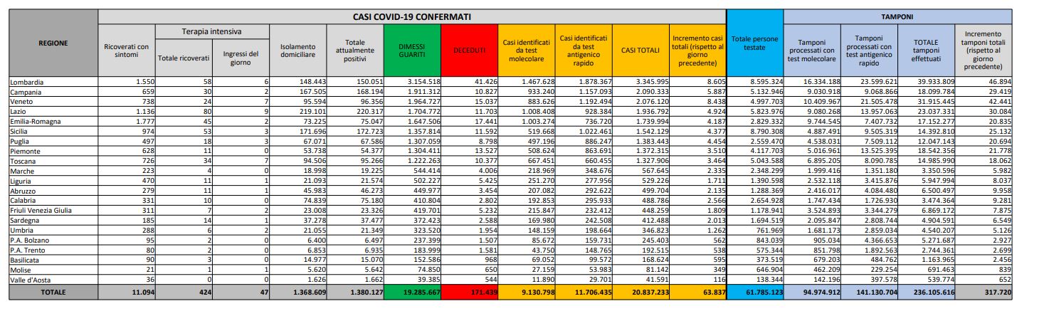 Attualmente positivi: 1.380.127