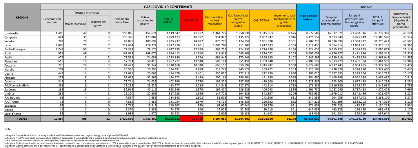 Tamponi fatti oggi: 350.630