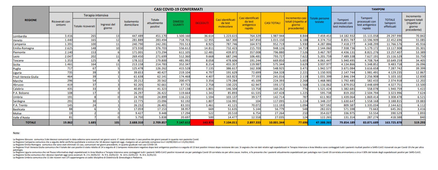 Tamponi fatti oggi: 519.293