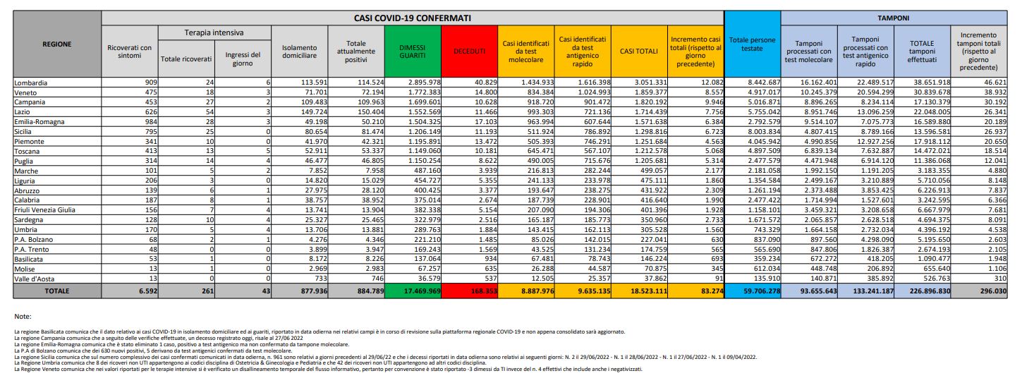 Oggi positivi: 83.274