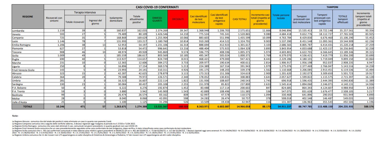Tamponi fatti oggi: 588.576