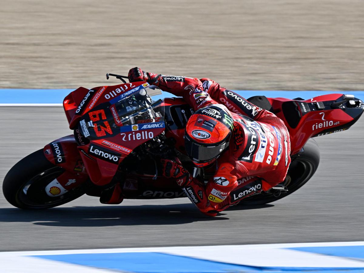 “Sono contento, questa moto nel time attack dall’anno scorso è veramente forte, la sfruttiamo bene -ha detto Bagnaia a caldo-. Nelle quarte libere abbiamo fatto una cosa che non mi entusiasmava, andavo sempre lungo, poi in qualifica siamo andati in direzione opposta e mi sono trovato benissimo. Anche il feeling era molto buono, ora sarà complicato scegliere le gomme per la gara”.