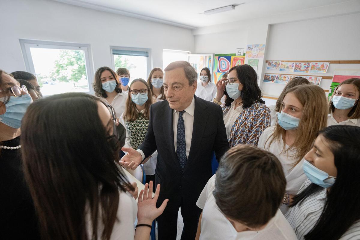 Una donna alla quale “devo gran parte di quel che ho fatto negli ultimi 40-50 anni”, dice il premier con un sorriso. “Ogni tanto mi viene in mente la quantità di fesserie che avrei fatto se non ci fosse stata lei – ammette Draghi, strappando un sorriso agli alunni raccolti in palestra per ascoltare l’intervento del premier -. E anche alla capacità di capire il momento psicologico: ne ho attraversati tanti nella mia vita. E poi la famiglia che si è creata, i figli, i nipoti della vostra età. Quindi è tutta una storia bella che si centra su di lei, quindi un applauso per lei” ‘chiama’ Draghi, subito accontentato dagli studenti e dagli insegnanti che assistono al suo saluto.