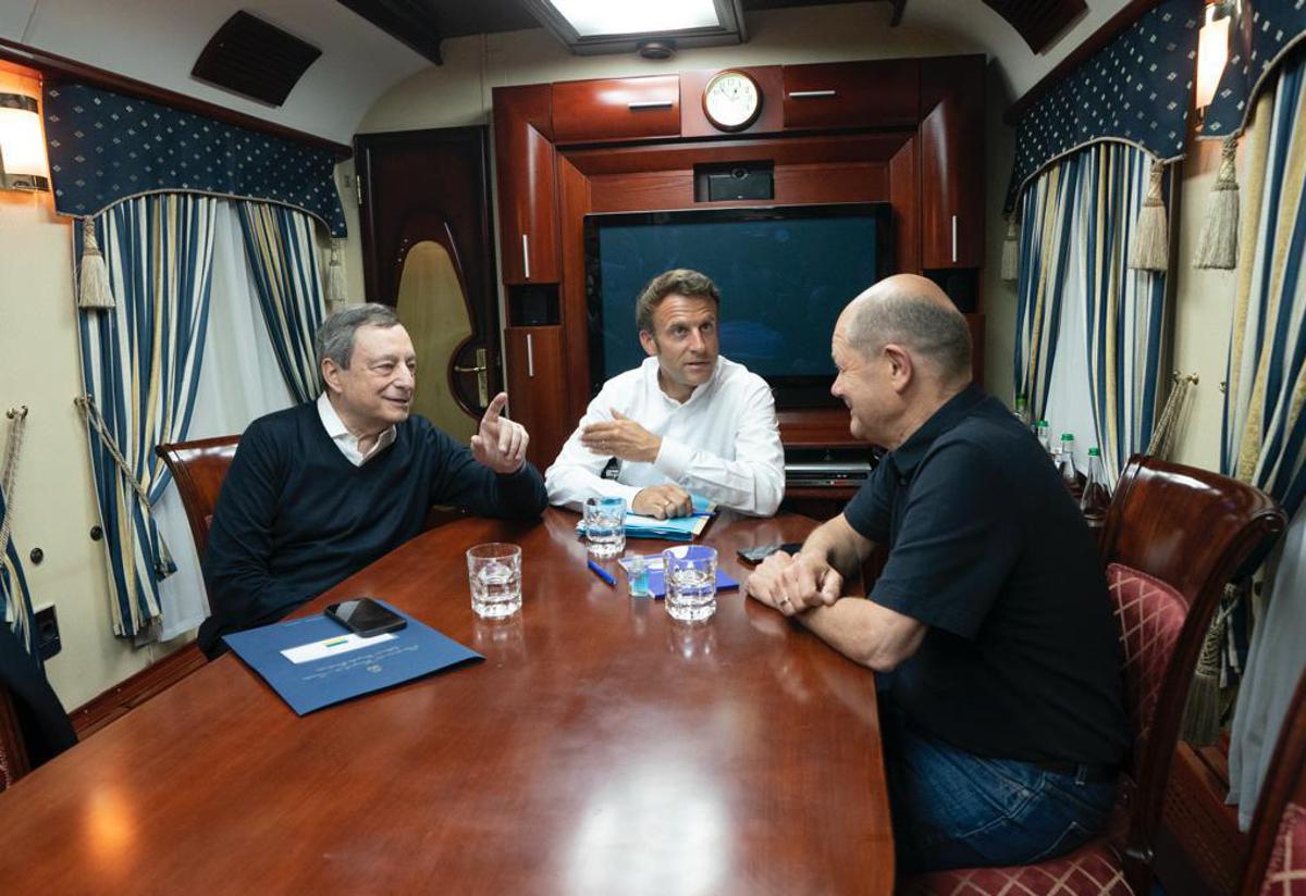 Dopo circa 10 ore di viaggio su un treno partito da Medyka (Polonia), e non come previsto da Przemysl a causa di un problema elettrico, per quello che senza dubbio è il viaggio più complesso dell’ex numero uno della Bce da quando è a Palazzo Chigi, i tre hanno l’occasione di incontrare faccia a faccia Zelensky, dopo diversi colloqui telefonici nei mesi scorsi.