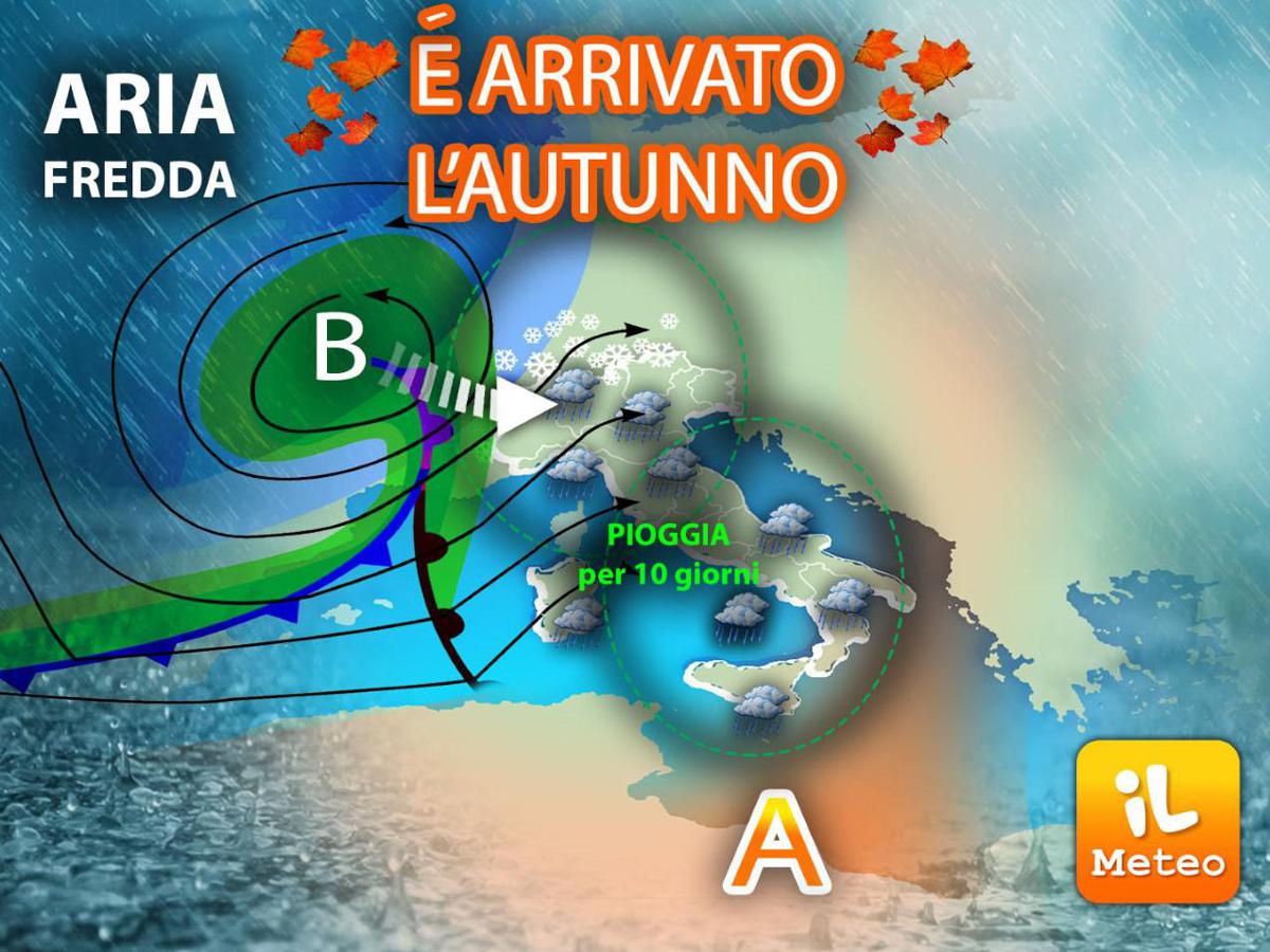In dieci giorni è cambiato tutto, è arrivata anche la neve sulle Alpi fino ai 1300 metri; i prossimi giorni, come detto, saranno perturbati ma non particolarmente freddi: vivremo la classica stagione autunnale, consigliamo impermeabili ed ombrelli grandi, quelli che avevamo dimenticato da almeno un anno…ovviamente le piogge non saranno continue, alterneremo giornate uggiose ed umide ad altre meno bagnate.