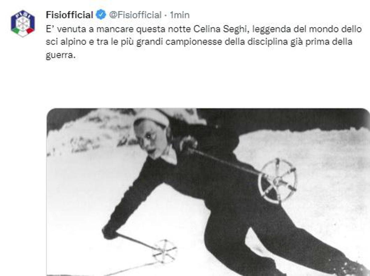 (Adnkronos) – La leggenda dello sci Celina Seghi, campionessa attiva soprattutto negli anni Quaranta e Cinquanta, è morta la notte scorsa a Pistoia all’età di 102 anni. In vent’anni di agonismo la sciatrice si aggiudicò ben venticinque titoli italiani. Ribattezzata “la signora delle nevi”, era nata all’Abetone, sulle montagne pistoiesi, nel 1920, pochi mesi prima di Zeno Colò, altro mito dello sci italiano anche lui originario dell’Abetone.