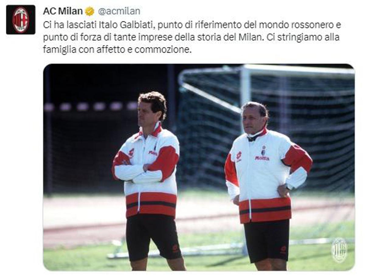 (Adnkronos) – Il mondo del calcio piange Italo Galbiati, morto all’età di 85 anni. Per tanti anni è stato il vice di Fabio Capello, sulle panchine di Milan, Roma e Real Madrid e poi di Inghilterra e Russia. Da calciatore, dopo l’esordio con l’Inter, Galbiati ha vissuto la sua carriera tra Reggina, Como e Lecco. “Ci ha lasciati Italo Galbiati, punto di riferimento del mondo rossonero e punto di forza di tante imprese della storia del Milan. Ci stringiamo alla famiglia con affetto e commozione”, scrive il Milan su Twitter.