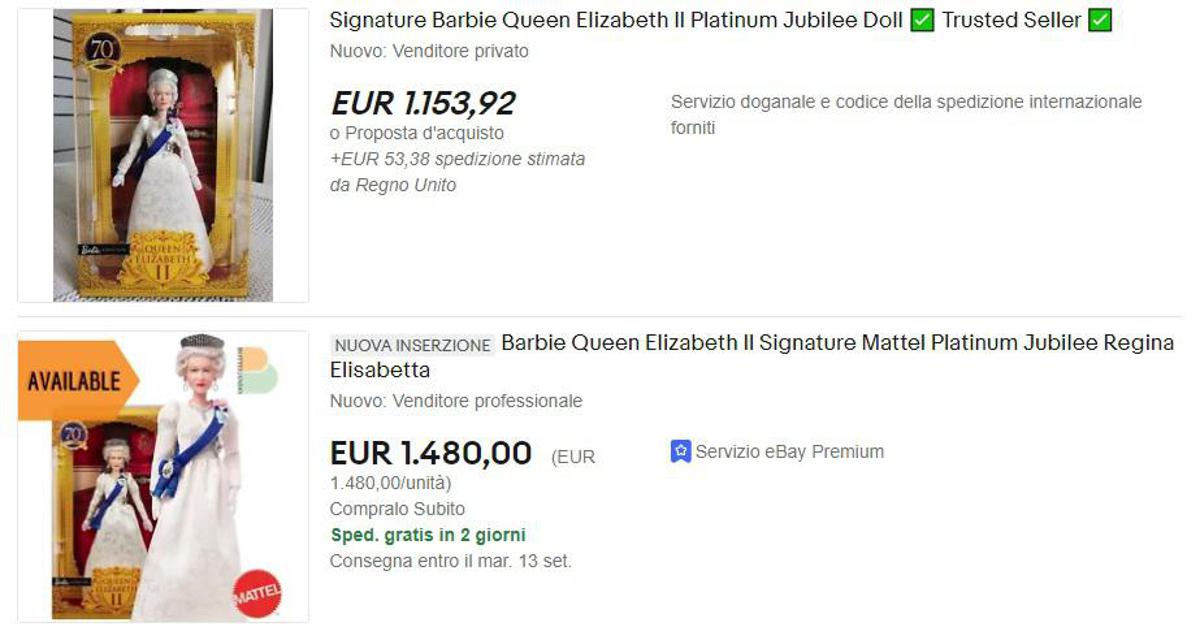 (Adnkronos) – Salgono a vista d’occhio le quotazioni di gadget e memorabilia legati alla Regina Elisabetta. Su eBay ha raggiunto quasi i 1.500 euro il costo della Barbie Regina nell’edizione creata per il Giubileo dei 70 anni di regno. Ma anche tanti altri gadget legati alla sovrana vanno a ruba sia su eBay che su Amazon: dalla tazza con l’effige di Elisabetta II alla statuetta della regina che saluta con la mano.