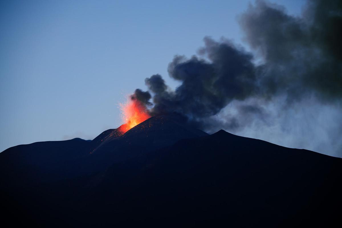 Spettacolare eruzione sull’Etna. Si vede un’intensa fontana di lava, accompagnata da emissione di nube eruttiva, dal cratere di sud-est. Sono presenti anche due trabocchi lavici: uno è ben alimentato e il suo fronte ha raggiunto una quota di circa 2.800 metri sul livello del mare, l’altro si propaga in direzione Est e ha raggiunto l’alto orlo occidentale della desertica valle del Bove. Il centro delle sorgenti del tremore vulcanico è localizzato nell’area del cratere di sud-est, a una elevazione di circa 2.900-3.000 metri sul livello del mare.
