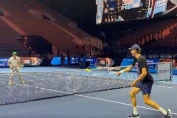 (Adnkronos) – La prima sfida, per Jannik Sinner, al Six Kings Slam arriva quando meno te l'aspetti. Durante l'allenamento di oggi, martedì 14 ottobre, alla vigilia della sfida d'esordio contro Stefanos Tsitsipas nei quarti di finale del ricchissimo torneo esibizione di Riad, il tennista azzurro è stato protagonista di un simpatico siparietto con Ubaldo Scanagatta, ex tennista oggi giornalista e fondatore di Ubitennis, che ha seguito Sinner fino in Arabia. Scanagatta ormai è una vera e propria celebrità del mondo del tennis, tanto da avere un rapporto quasi familiare anche con i tennisti, tra cui Jannik Sinner. "Sono venuto qui solo perché mi avevi detto che le mie domande ti erano mancate!”, ha urlato il giornalista all'azzurro poco prima dell'inizio dell'allenamento, come riportato proprio da Ubitennis. "Sì, ma l’ho detto prima di Roma…”, ha risposto divertito Sinner. "Ah dopo non ti sono mancate più!", ha continuato Ubaldo, che poi si è spinto oltre, "ho portato la racchetta, se mi fai giocare due minuti aggiungo un numero uno del mondo alla mia collezione. Ho giocato con sei numeri 1…”. Sinner ha allargato il sorriso: "Ma io non sono più numero uno!". L'invito però è stato accolto. E così Scanagatta è entrato in campo e ha scambiato qualche colpo a rete con Sinner, mostrando buone abilità con la volée e un'ottima manualità. Lo scambio però, come era pronosticabile che fosse, è stato vinto da Jannik, ma Ubaldo può aggiungere un numero uno alla sua collezione.