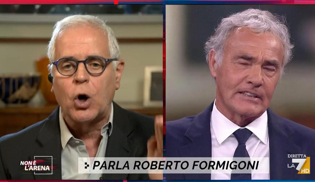 Massimo Giletti e Roberto Formigoni protagonisti di un violento scontro in tv a Non è l’arena. Si parla del vitalizio percepito dall’ex governatore della Lombardia. “La Corte dei Conti dice che quello che ricevo dal Senato è pensione. Torno a ricordare che non un euro che mi verrà riconosciuto deriverà da altro se non da soldi messi accumulati da me e affidati al Senato”, dice Formigoni. “Il problema è la morale. Uno che viene condannato per corruzione, non dovrebbe riceverlo (il vitalizio, ndr)”, incalza Giletti. “In uno stato funziona la legge. Non siamo fortunatamente nel nazismo, né nel comunismo. Studi, si informi. Studi i fondamentali della legge…”, dice Formigoni mentre i toni si alzano. “Ve la fate voi la legge…”, replica Giletti. “Fin quando c’è la legge, va applicata e rispettata. La legge è dalla mia parte. Anche se le dispiace, caro Giletti, la legge è dalla mia parte. Io sto scontando per intero la condanna a cui sono sottoposto. Ho fatto 5 mesi in galera e non avrei dovuto farli, è stata applicata una legge incostituzionale”, dice ancora Formigoni.
