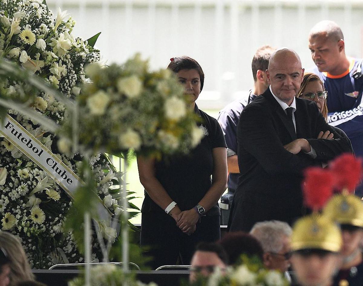 “Sono appena atterrato dal mio viaggio in Brasile dove ho avuto il privilegio di partecipare al bellissimo omaggio a Pelé a Vila Belmiro, a Santos. Sono costernato dopo essere stato informato che apparentemente sono stato criticato da alcune persone per aver scattato un selfie e delle foto durante la cerimonia di ieri”, scrive Infantino.