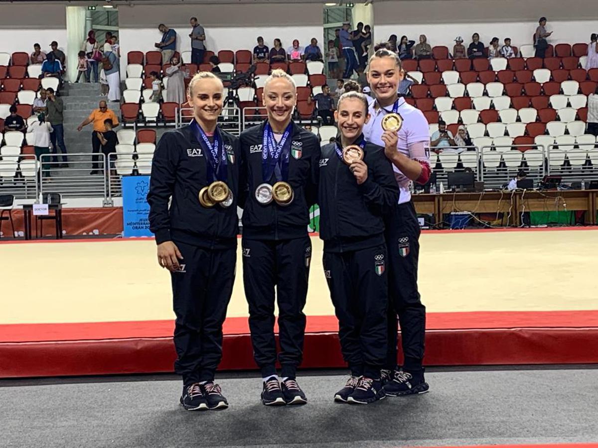 (Adnkronos) – (dall’inviato Emanuele Rizzi) È un’Italia da record nella rassegna a 3 cerchi dei Giochi del Mediterraneo, non era mai successo infatti che le azzurre vincessero tutte le prove in programma. È accaduto ad Orano, con le ginnaste che tornano dall’Algeria con 11 medaglie: 6 ori, 4 argenti e un bronzo. L’Italia della ginnastica chiude con un poker di ori, tre argenti e un bronzo l’ultima giornata del programma con un anplein nelle prove di specialità dei quattro singoli attrezzi nel femminile. Le azzurre di Enrico Casella hanno vinto anche l’oro nel concorso All Around singolare e a squadre.