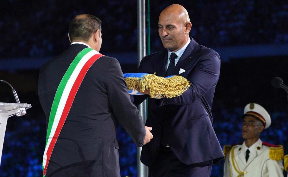 Dopo la sfilata degli atleti, insolitamente senza portabandiera, è il momento del passaggio delle consegne tra Orano 2022 e Taranto 2026. Si alza il Tricolore, risuona l’Inno di Mameli, e partono le immagini della città pugliese: un’anteprima di ciò che sarà tra quattro anni. Poi la bandiera azzurra del Comitato Internazionale dei Giochi del Mediterraneo viene ammainata e passa dalle mani del Presidente del Cijm, Davide Tizzano, a quelle del sindaco di Taranto, Rinaldo Melucci. Tocca quindi ai discorsi del Presidente del Comitato Organizzatore Mohamed Aziz Derouaz, del premier algerino, Aymen Benabderrahmane e di Tizzano che fa il suo intervento in arabo. L’Algeria saluta così i Giochi.