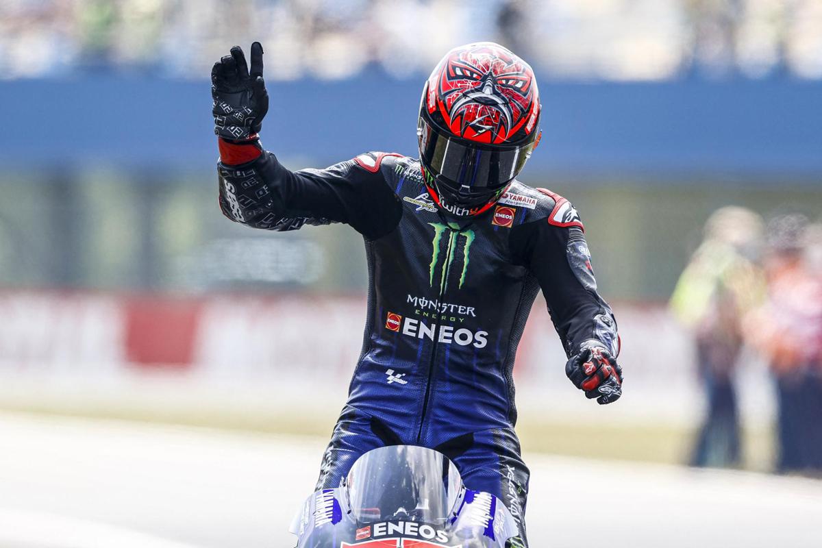 Doppietta Yamaha ad Assen nel Gp d’Olanda di MotoGp. Vince Fabio Quartararo davanti al compagno di box Maverick Vinales. Sul podio anche la Suzuki con Joan Mir. Bagnaia, in lotta per la vittoria fino a metà gara, riceve un long lap penalty per essere uscito sul verde e chiude al 6° posto. Male invece Valentino Rossi. Il ‘Dottore’, partito in dodicesima posizione, alla prima curva è sfilato subito in fondo al gruppo e dopo 8 giri è uscito di pista.