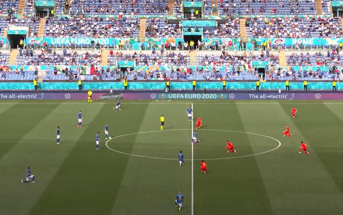Cinque azzurri si inginocchiano per mostrare sostegno alla campagna Black Lives Matter prima dell’inizio del match con il Galles. Belotti, Bernardeschi, Emerson, Pessina e Toloi si sono inginocchiati, come hanno fatto tutti i calciatori della nazionale gallese.