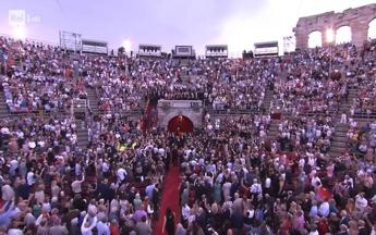 (Adnkronos) – Tutti in piedi all’Arena di Verona per l’ingresso di Sophia Loren, madrina della cerimonia per il centenario del festival. La star italiana più famosa nel mondo è entrata accompagnata dal ministro della Cultura, Gennaro Sangiuliano. La standing ovation è stata accompagnata da lunghi e ripetuti applausi. Con la grande attrice anche il figlio Carlo. Tra i primi a salutare la diva è stato il presentatore televisivo Amadeus. “E’ una grande emozione per me essere qui all’Arena di Verona, questo è uno dei simboli della bellezza dell’Italia, di quella bellezza che tutto il mondo ci invidia”, ha detto Sophia Loren tra gli applausi dei 12mila spettatori. Pochi minuti dopo sull’Arena l’esibizione delle Frecce Tricolori con due sorvoli e l’inno nazionale eseguito dal coro con vestiti verdì, bianchi e rossi. —spettacoliwebinfo@adnkronos.com (Web Info)