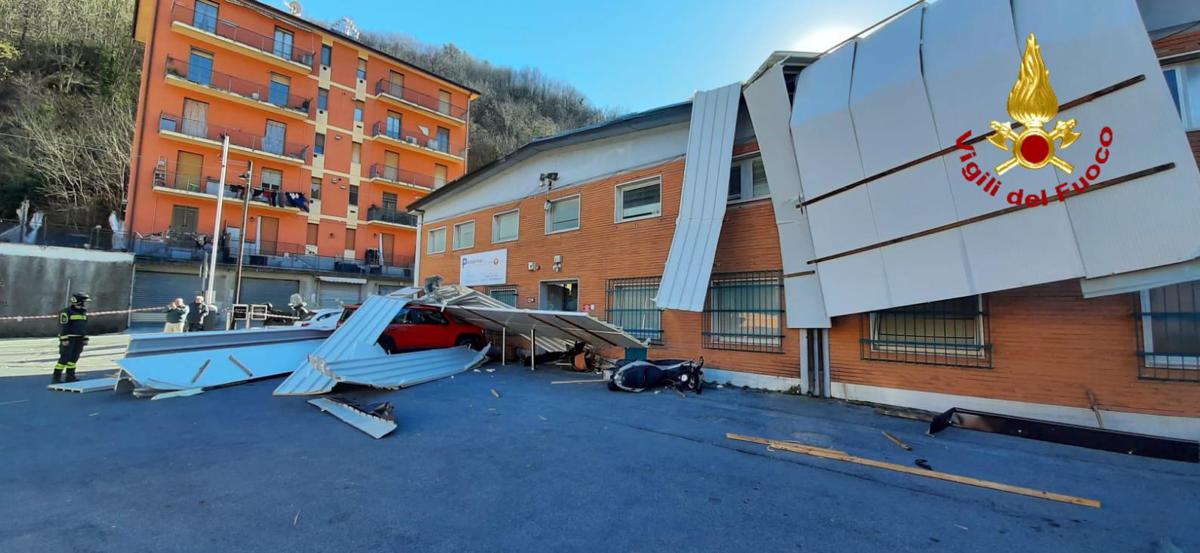 In Liguria, i Vigili del fuoco di Bolzaneto sono intervenuti a Ceranesi, località Puntasso per un tetto scoperchiato. A causa del forte vento, circa 160 mq di lamiere coimbentate, si sono staccate dal tetto di un magazzino volando sul piazzale sottostante e sul fabbricato di fronte. Ingenti i danni alle vetture sottostanti e al fabbricato. Lo rendono noto gli stessi Vigili del fuoco precisando che fortunatamente nessuno è rimasto coinvolto.