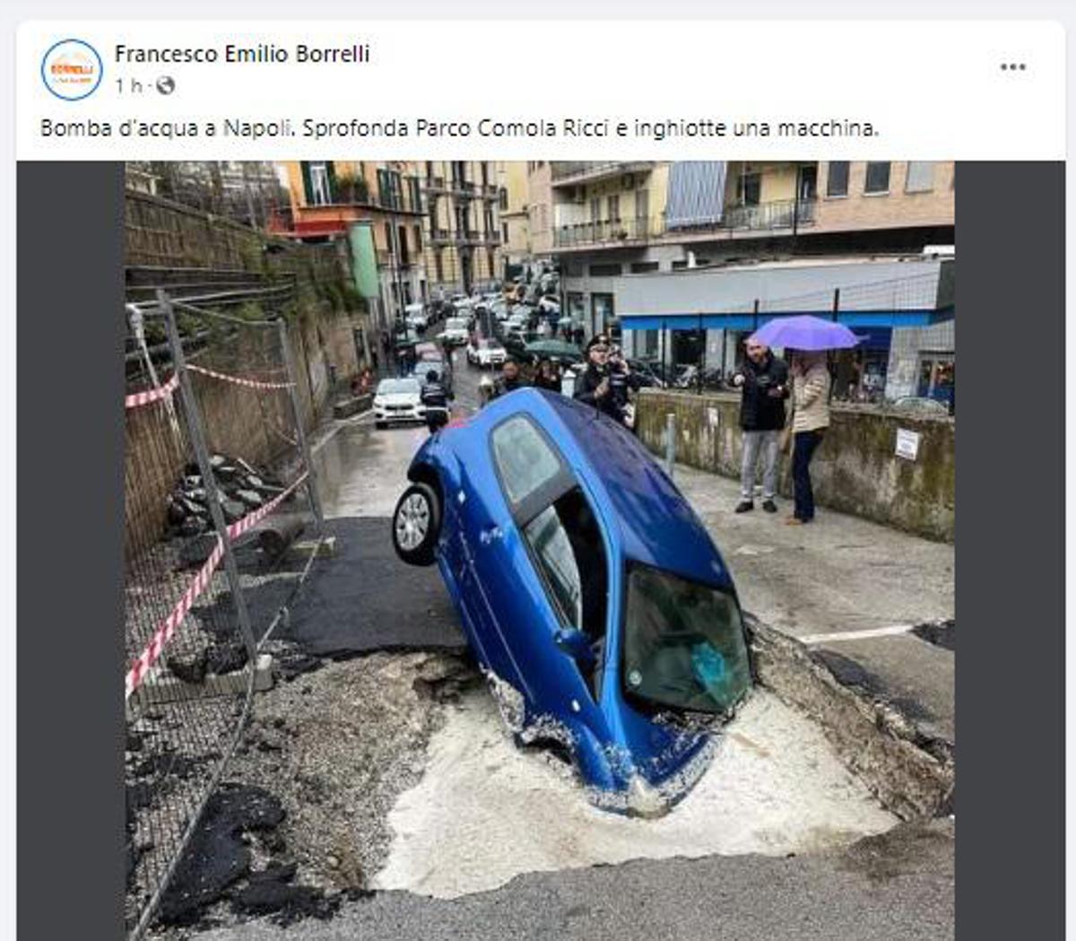 (Adnkronos) – Una voragine si è aperta in strada a Napoli, in via Comola Ricci nel quartiere Posillipo, a seguito delle forti piogge che si sono abbattute in tarda mattinata sulla città. Nella voragine è finita un’auto all’interno della quale si trovava un 87enne, con l’acqua che era salita fino alle gambe. Sul posto sono intervenuti i Carabinieri della stazione di Posillipo che lo hanno estratto dall’abitacolo. L’anziano è in buone condizioni. L’area è stata messa in sicurezza dai vigili del fuoco.
