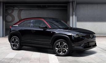 Mazda MX-30 e-Skyactiv R-EV è un crossover elettrico alimentato da un motore rotativo Wankel. A distanza di 11 anni dall’ultima vettura prodotta in serie con motore rotativo, Mazda rilancia un nuovo modello spinto dal glorioso Wankel, sulla MX-30 R-EV funge da generatore di energia, che provvede a caricare la batteria o a fornire energia aggiuntiva. La potenza complessiva a disposizione è di 145 cavalli. Ha un pacco batteria da 17,9 kWh per un’autonomia in EV fino a 85 km, il motore rotativo Wankel ne estende la percorrenza, riducendo al tempo stesso le emissioni. L’autonomia dichiarata nel ciclo combinato WLTP è di 200 km, il consumo energetico è pari a 17,9 kWh/100 km. Di fatto la MX-30 è prodotta all’insegno della sostenibilità, la vernice carrozzeria è applicata con una pistola a spruzzo ad alta tecnologia che distribuisce con precisione sulla superficie i singoli colori dove sono necessari, riducendo così notevolmente le perdite di vernice. Le vernici di nuova concezione della Mazda solidificano a una temperatura di circa 80 C°, questo processo di verniciatura multi tono ha consentito di ridurre le emissioni di CO2 del 34-37% circa.
