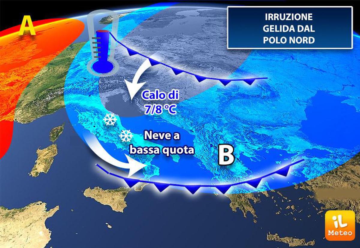 Oltre all’arrivo delle piogge, nel corso del fine settimana l’improvviso e conseguente ritorno a temperature decisamente più rigide favorirà anche qualche nevicata fino a quote molto basse specialmente sui rilievi del Centro e a quote un po’ più alte su quelli del Sud.