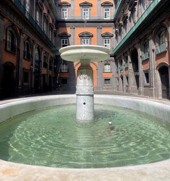 (Adnkronos) – In occasione dell’inaugurazione del Museo Caruso, aperto nella Sala Dorica del Palazzo Reale di Napoli, che affaccia nel Cortile delle Carrozze, è stata restituita all’antico splendore anche la grande fontana di forma ovale. Collocata al centro del cortile che fu riconfigurato nel XIX secolo dall’architetto Gaetano Genovese, la fontana è la prima a essere stata interessata da un programma di restauro dei manufatti in marmo e di installazione degli impianti per il ricircolo che coinvolgerà anche altre fontane di Palazzo Reale. Recentemente è stato completato anche l’intervento alle due fontane con vasca circolare del Giardino Pensile e a breve anche il tavolo-fontana al centro del terrazzo e la Fontana della Fortuna nel Cortile d’Onore saranno affidati alla cura dei tecnici e dei restauratori. L’intervento di recupero della fontana è stato realizzato in tempi record grazie al lavoro sinergico di maestranze diverse coordinate dall’architetto Almerinda Padricelli e dall’architetto paesaggista Marco Ferrari: dalle restauratrici dell’impresa Tecnicon s.r.l. agli impiantisti della Royal Garden, della Top Impianti&Manutenzioni e di Edil.Group s.r.l.. Nel Giardino Romantico di Palazzo Reale procedono i lavori per consentire al pubblico che può accedere gratuitamente tutti i giorni, compresi i festivi, di godere di un po’ di frescura nelle afose giornate estive. Sono a disposizione dei cittadini 25 panchine di legno collocate nelle zone più ventilate e ombrose e, da questo fine settimana verranno posizionati anche 51 speciali cestini per la raccolta differenziata. Anche una piccola fontana dal lato via Verdi offre l’acqua potabile ai visitatori dello storico giardino reale.