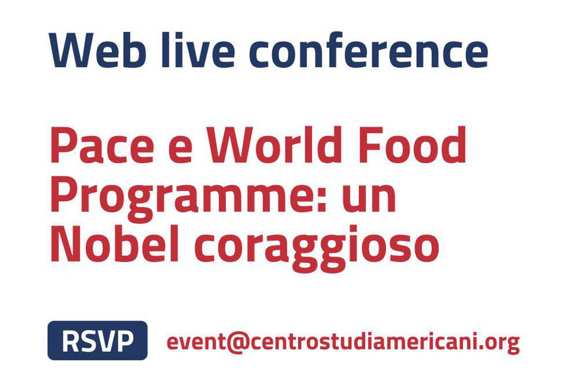 Oggi alle 18:00 su Zoom si terrà l’evento “Pace e World Food Programme: un Nobel coraggioso”, organizzato dal Centro Studi Americani, per raccontare e commentare l’assegnazione del premio Nobel per la pace al WFP.