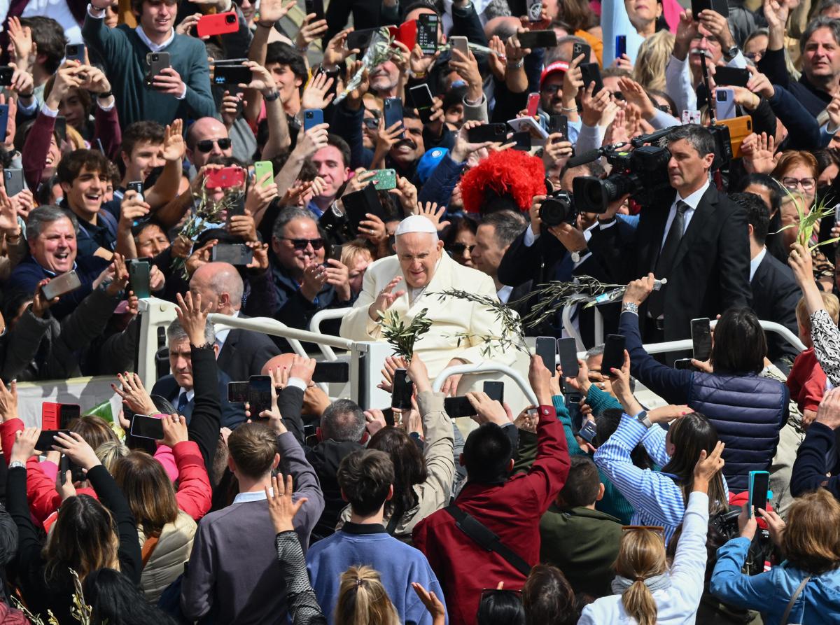 Quindi al termine della celebrazione delle Palme il Papa, prima di guidare in piazza San Pietro la recita dell’Angelus ha ringraziato fedeli e pellegrini: “Vi ringrazio per la vostra partecipazione e anche per le vostre preghiere, che nei giorni scorsi avete intensificato. Grazie davvero!”, ha detto Bergoglio che dopo l’Angelus ha salutato i cardinali che hanno concelebrato in piazza San Pietro la messa delle Palme, tra cui anche monsignor Georg Ganswein, prefetto della Casa Pontificia congelato nelle funzioni da tre anni e il cardinale Angelo Becciu, imputato nel processo in Vaticano legato allo scandalo finanziario per la compravendita del Palazzo di Londra.