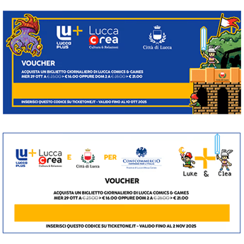 (Adnkronos) – A meno di due mesi dal festival, sotto l’egida del Comune di Lucca, due società del gruppo – Lucca Crea e Lucca Plus – stringono un patto per arricchire ulteriormente le opportunità dei lucchesi. Una grande promozione cui si unisce anche Confcommercio. Lucca Crea, con il Comune di Lucca e Lucca Plus, realizzerà 10.000 voucher con uno sconto di 7€ per il primo e ultimo giorno di manifestazione per i residenti del Comune di Lucca. La promozione poi proseguirà in collaborazione con Confcommercio nella settimana successiva all’inaugurazione delle mostre di Palazzo Guinigi. Saranno disponibili cartoline con codici sconto che verranno distribuite sul territorio a settembre da Lucca Plus e in ottobre dagli esercenti che aderiranno al progetto.   La distribuzione avverrà dal 25 settembre al 3 ottobre: ogni cartolina riporterà un codice, che utilizzato al momento dell’acquisto del biglietto garantirà uno sconto sul titolo di accesso giornaliero nei giorni di mercoledì 29 ottobre (biglietto scontato a 16 €, anziché 23 €) e domenica 2 novembre (biglietto scontato a 21 €, anziché 28 €). I codici saranno utilizzabili sul portale di Ticketone fino al 10 ottobre. Per i cittadini lucchesi che avessero già acquistato in precedenza un biglietto giornaliero per i giorni interessati dalla promozione, Lucca Plus metterà a disposizione un voucher del valore di 7 €, spendibile entro il 31 marzo 2026 presso le casse automatiche del parcheggio Mazzini. Il voucher potrà essere ritirato esibendo il titolo acquistato online in precedenza sempre dal 25 settembre al 3 ottobre presso l’Ufficio Accoglienza Turistica in Piazzale Verdi (Vecchia Porta San Donato) ogni giorno dalle 10 alle 18,30 festivi inclusi. La collaborazione con Lucca Plus, società consorella che gestisce i servizi di accoglienza turistica, le torri civiche e i parcheggi cittadini, prevede per la prima volta, una serie di agevolazioni dedicate:   Per i cittadini lucchesi saranno disponibili 700 posti auto distribuiti nei parcheggi straordinari “Don Baroni” e “Polo Fiere – Japan”, al costo agevolato di 10 € (pari al 50% della tariffa ordinaria), per i due giorni 29 ottobre e 2 novembre. I tagliandi potranno essere acquistati tutti i giorni, dal 25 settembre al 3 ottobre, all’Ufficio Accoglienza Turistica in Piazzale Verdi (Vecchia Porta San Donato), ogni giorno dalle 10.00 alle 18.00, festivi inclusi.   Ai partecipanti alla manifestazione, muniti di braccialetto, verrà praticato il prezzo ridotto di 4 € anziché 8 € per l’accesso alla Torre Guinigi.   Lucca Plus e Lucca Crea amplieranno il bookshop con uno spazio dedicato all’iniziativa, arricchendo l’offerta con materiali e proposte collegate all’evento. Come funziona la promozione con Confcommercio? Funziona allo stesso modo di quella con Lucca Plus, ma la distribuzione avverrà dal 18 al 25 ottobre nelle attività commerciali che avranno aderito al progetto, e saranno riscattabili fino al 2 novembre.   Una seconda iniziativa, invece, permetterà alle attività commerciali di promuovere una propria scontistica dedicata agli addetti ai lavori del festival, che rappresentano un comparto di oltre 20mila professionisti: in primis gli espositori, ma anche le migliaia di operatori che intervengono per realizzare il gigantesco evento lucchese. A indicare la partecipazione all’iniziativa promozionale sarà una speciale vetrofania con Luke e Clea (i due personaggi di Sergio Algozzino), che applicata sulla vetrina, aiuterà a identificare il negozio aderente.   La famiglia Guinigi “nume tutelare” dell’edizione 2025: Torre e Palazzo ospiteranno uno dei progetti più intriganti del festival. Al piano terra del Palazzo, si troverà l’esposizione più canonica dedicata a Sergio Algozzino e al suo variegato lavoro nel fumetto, che non mancherà comunque di sorprese celebrando il talento umanistico e globale dell’autore palermitano. Nella Torre invece esploderà tutta la creatività innovativa dell’artista che – accompagnato dai due personaggi che ha regalato alla città, Luke e Clea – rivisiterà in grafica a 8 bit la più recente tradizione dei poster di Lucca Comics & Games, a partire dell’indimenticabile drago di Ciruelo che nel 2003 sfidava la Torre e i suoi difensori: 23 manifesti, mascotte storiche, tavole originali andranno a comporre la prima grande mostra dedicata alla multiforme opera di Sergio Algozzino. In una sala al piano terra saranno esposti i diversi modi dell’artista di realizzare fumetti (da quello più realistico a quello più umoristico, dalle storie dedicate alla musica a quelle per il fumetto seriale, con anche qualche piccola anteprima), mentre il cammino verso la cima della Torre Guinigi sarà il fatidico viaggio dedicato ai poster. In questa scalata – che sarà la prima mostra di Lucca Comics & Games all’interno della torre più iconica della città murata – gli accompagnatori saranno due piccoli personaggi, Luke & Clea: nati quasi per gioco con il poster di Collezionando 2023 a celebrare il nome di Lucca Crea, di cui sono diventate le mascotte e ne racconteranno le tante avventure.